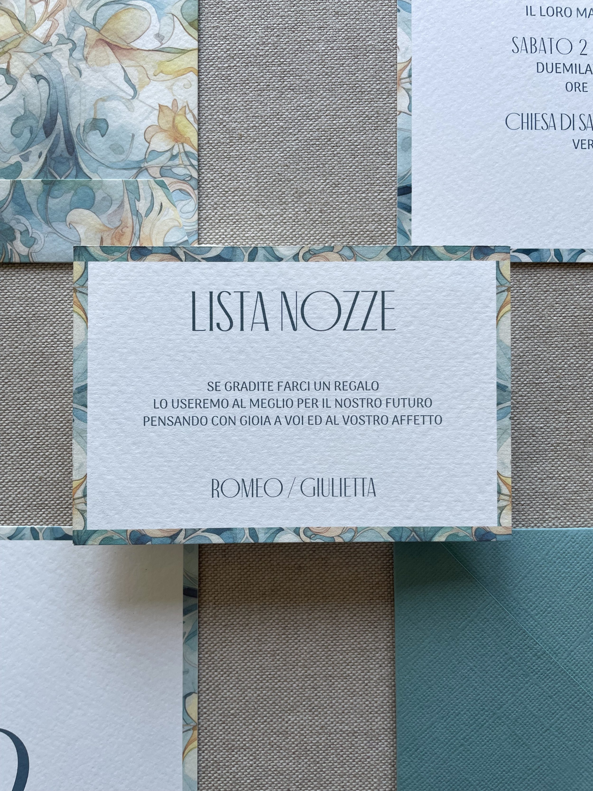 Le mie partecipazioni di matrimonio sono realizzate utilizzando esclusivamente carte italiane, accuratamente selezionate per la loro qualità e bellezza. Offro tre tipologie diverse di carta, ognuna con caratteristiche uniche, per adattarsi perfettamente al tuo stile e rendere ogni dettaglio indimenticabile. Scegliendo la carta italiana, valorizzi il tuo evento con materiali di pregio, che uniscono tradizione artigianale e raffinatezza estetica.